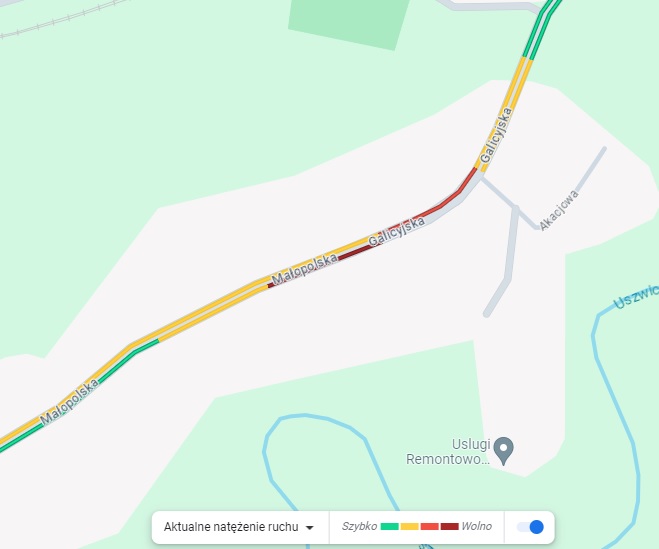 Mapa natężenia ruchu – Sterkowiec. Ul. Galicyjska. godz. 9.00 22 grudnia 2023 r.