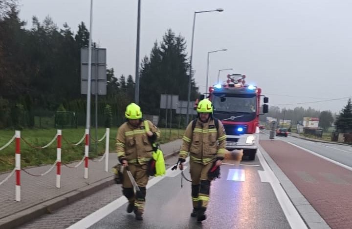 Strażacy sprzątali 15 km plamę substancji ropopochodnej na Drodze Krajowej 94