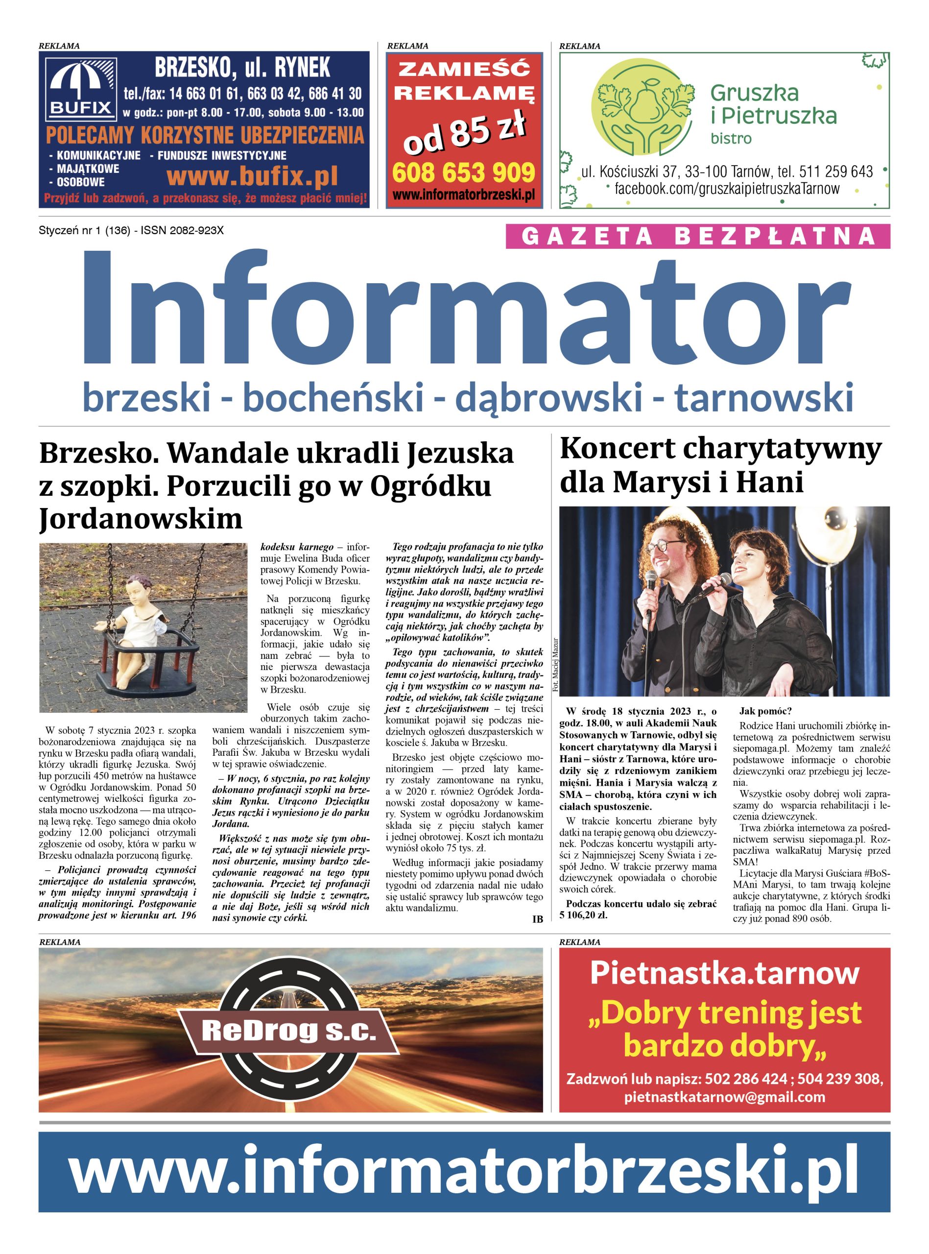 W czwartek 26 stycznia 2023 r. do dystrybucji trafił najnowszy — styczniowy numer Informatora Brzeskiego. Gazetę znajdą Państwo w urzędach gminy oraz w wielu sklepach na terenie Powiatu Brzeskiego, Bocheńskiego, Dąbrowskiego oraz Powiatu Tarnowskiego.