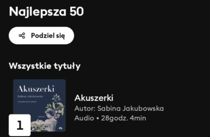 „Akuszerki” – książka autorstwa Sabiny Jakubowskiej znalazły się na 1 miejscu w Najlepszej 50 Książek w kategorii literatura obyczajowa w aplikacji Storytel.
