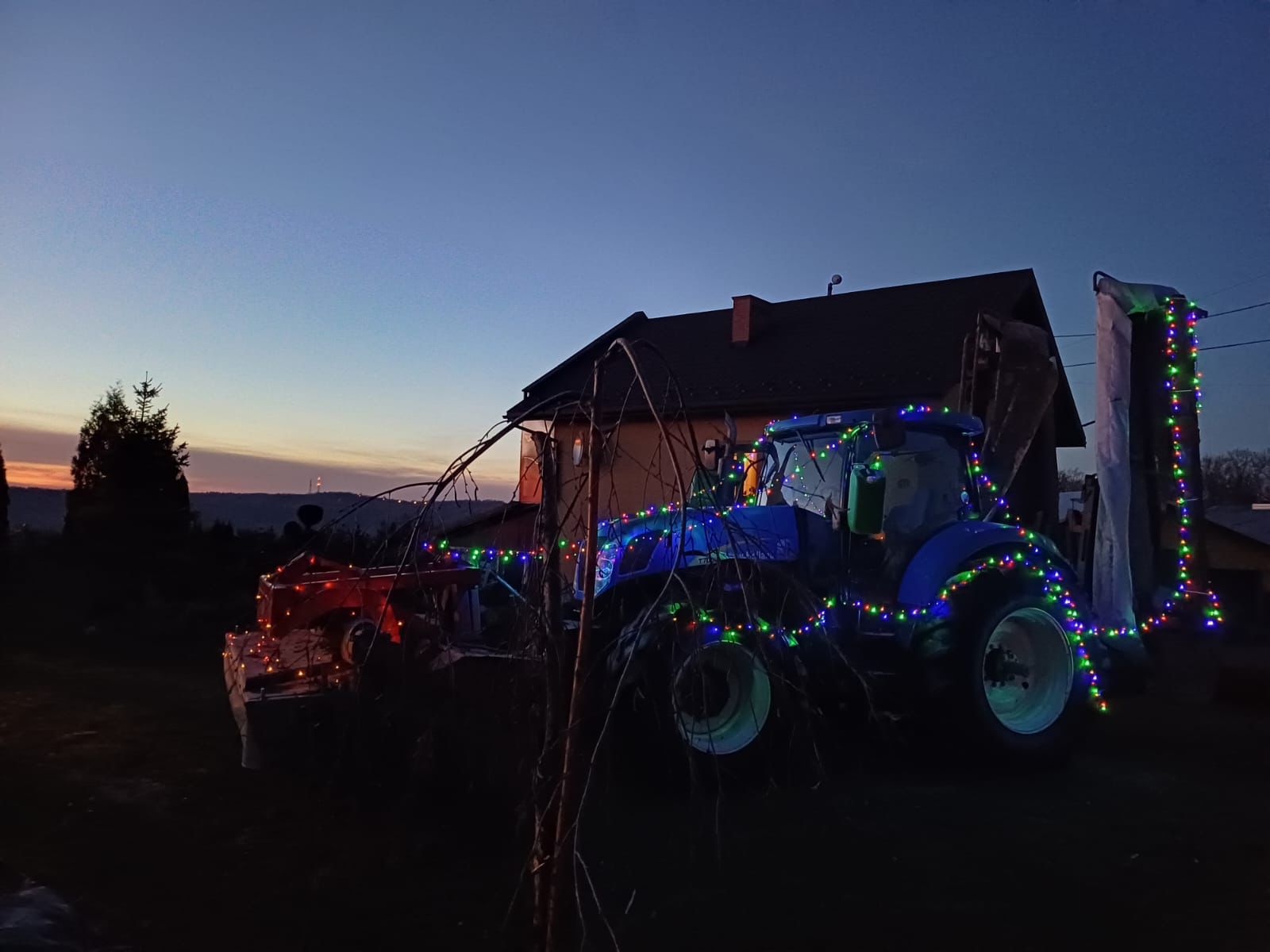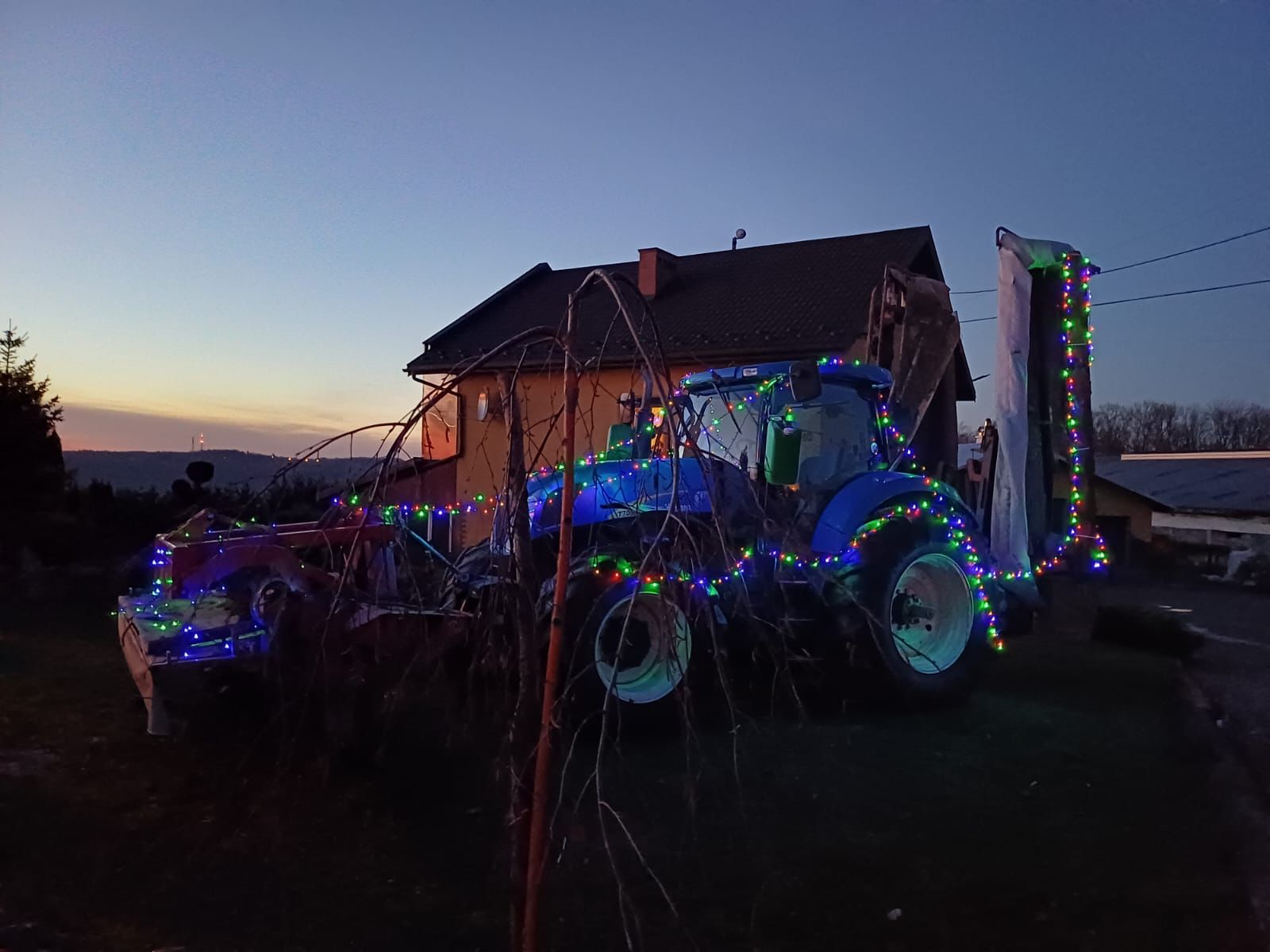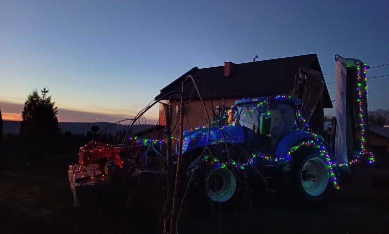 Rozświetlony ciągnik to tegoroczny pomysł Państwa Osadów z Okocimia na bożonarodzeniową ozdobę posesji. W tym roku ogród właścicieli dużego gospodarstwa rolnego zdobi traktor przybrany w ozdoby świąteczne. Nowa instalacja jest widoczna przy ul. Goetzów Okocimskich.