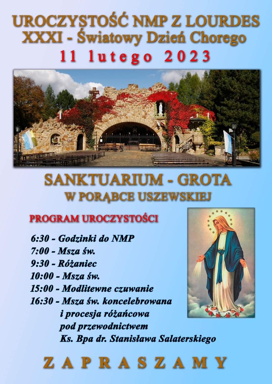 Światowy Dzień Chorego w Sanktuarium w Porąbce Uszewskiej – program / 11 lutego 2023 r.
