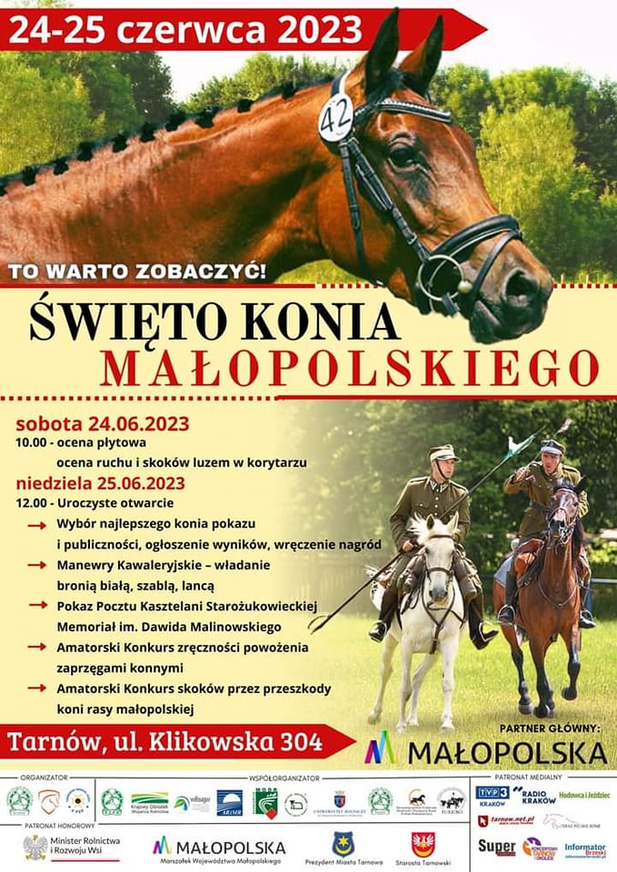 Małopolski Związek Hodowców Koni, Fundacja Klikowska Ostoja Polskich Koni oraz Tarnowski Oddział Jazdy im. 5. Pułku Strzelców Konnych, serdecznie zapraszają do Klikowej na Święto Konia Małopolskiego.