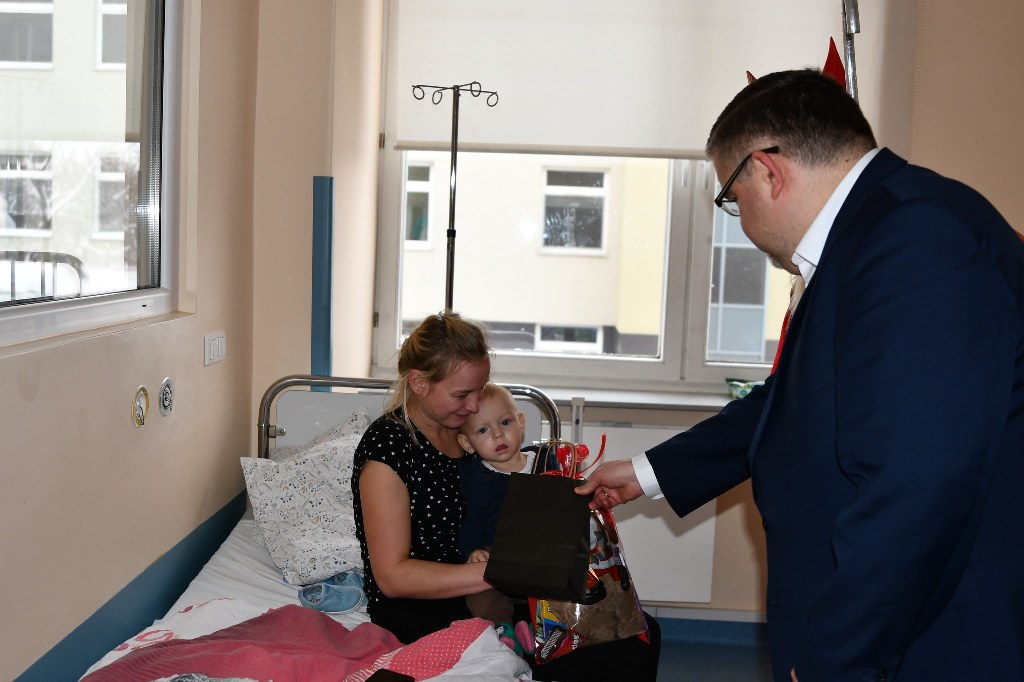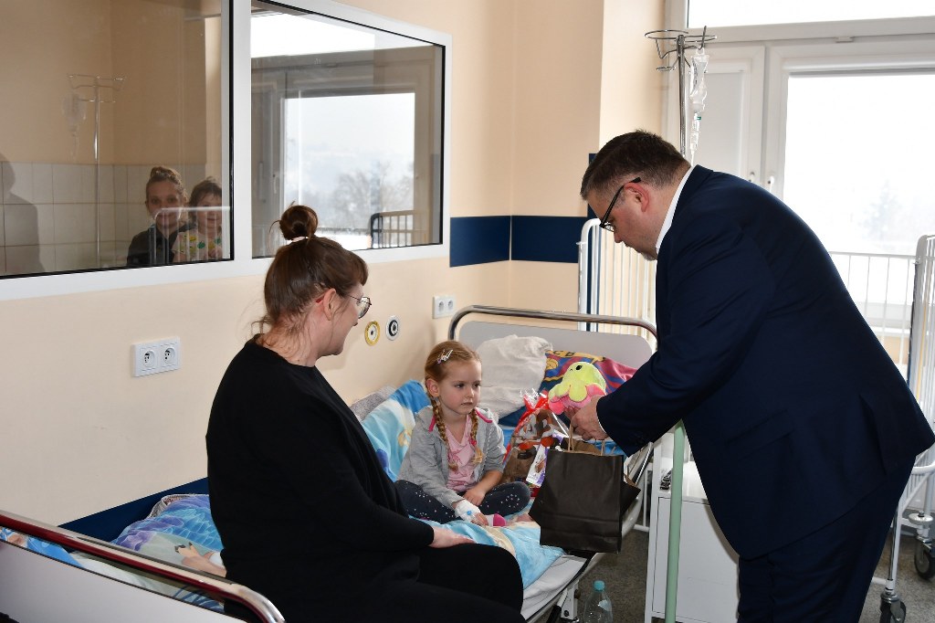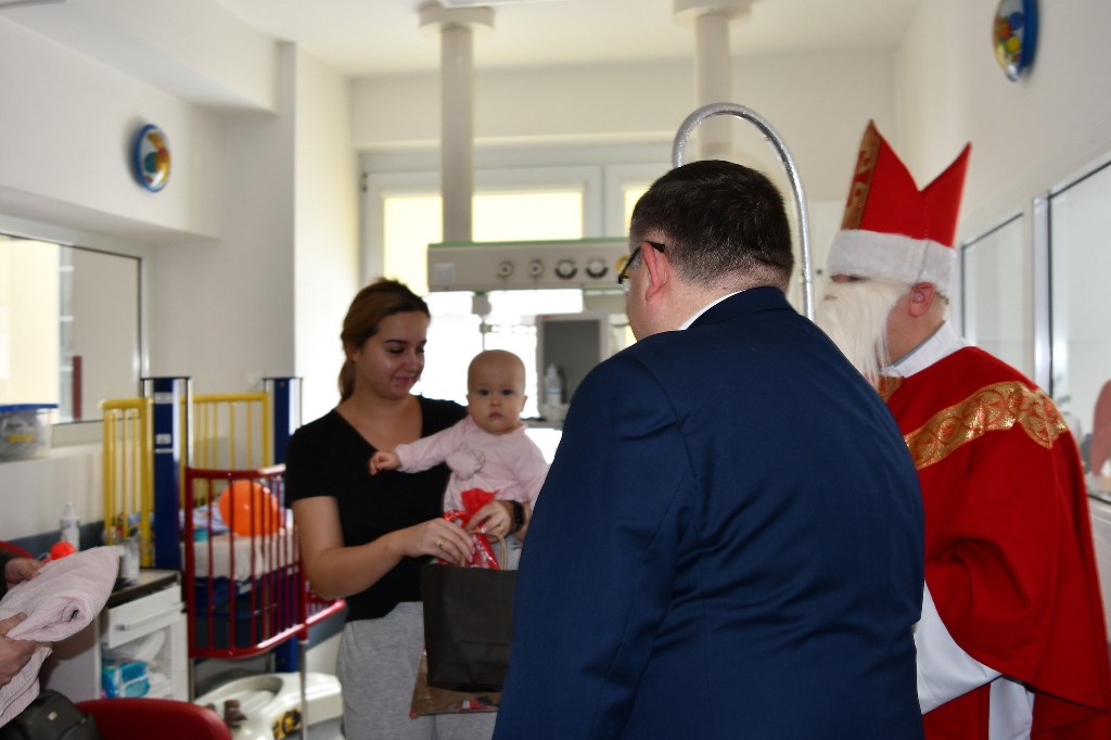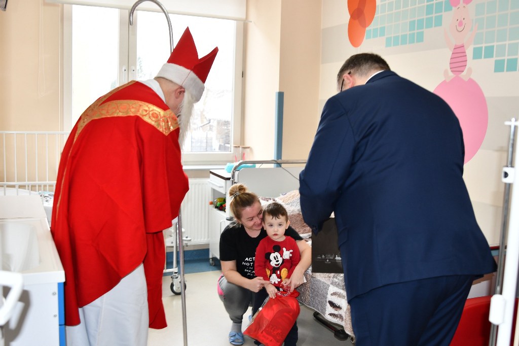 – Mikołajki to wyjątkowy czas, dlatego nie mogło nas dziś  tu nie być – podkreślał gospodarz powiatu wręczając upominki najmłodszym pacjentom szpitala.