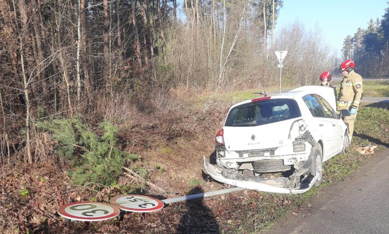 Osoba kierująca straciła panowanie nad pojazdem w efekcie czego pojazd wypadł z jezdni i uderzył w przydrożny znak. Na szczęście nikt nie został poszkodowany.