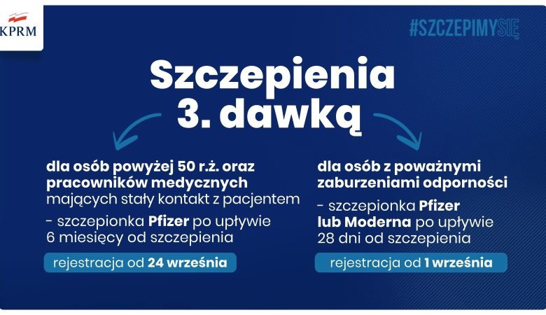 Rozpoczął się proces wystawiania skierowań do e-rejestracji na szczepienia dawką przypominającą dla wszystkich osób, które ukończyły 50 rok życia oraz pracowników ochrony zdrowia mających bezpośredni kontakt z pacjentem lub w warunkach laboratoryjnych z materiałem zakaźnym SARS-CoV-2.