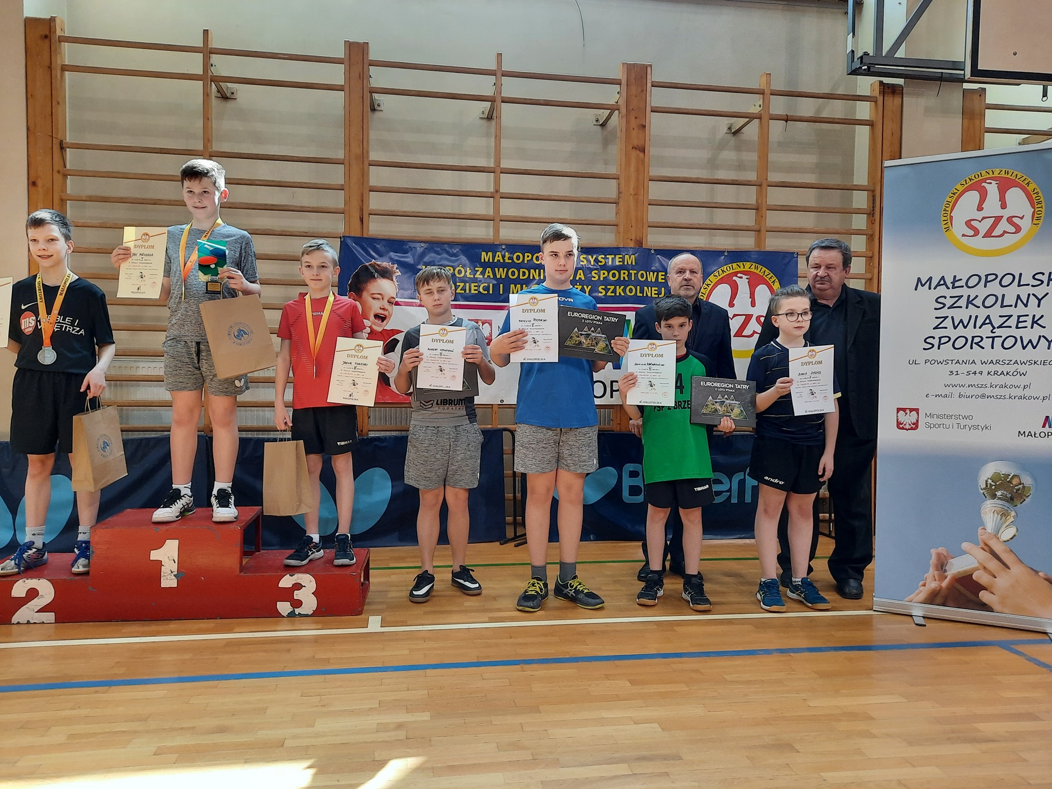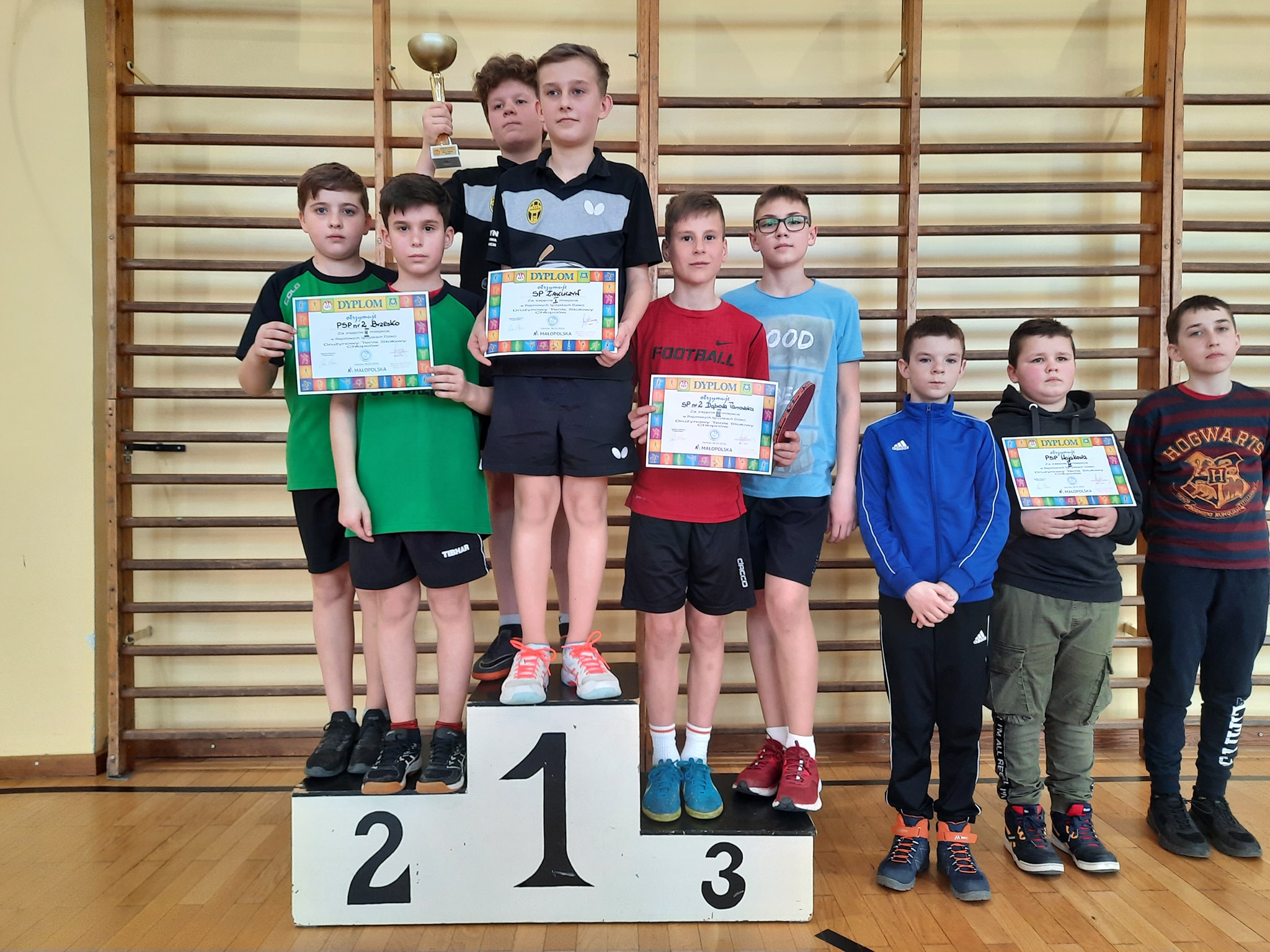 Tuż przed Wielkanocą, szkolne zmagania sportowe zakończyli tenisiści stołowi Zespołu Szkolno-Przedszkolnego w Brzesku. Największe sukcesy odnieśli chłopcy, startując w ramach Igrzysk Dzieci (ur. 2009 i młodsi). Począwszy od listopada, rywalizowali indywidualnie i drużynowo, przechodząc kolejno etap gminny, powiatowy, rejonowy (międzypowiatowy) i na finałach wojewódzkich w Nowym Targu kończąc.
