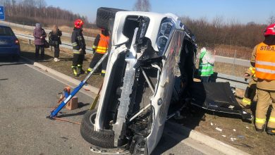 Brak należytej uwagi i zmęczenie przyczyną dachowania białego suv-a, trzy kilometry przed węzłem Tarnów-Centrum od strony Rzeszowa. Pojazdem jechała kobieta…