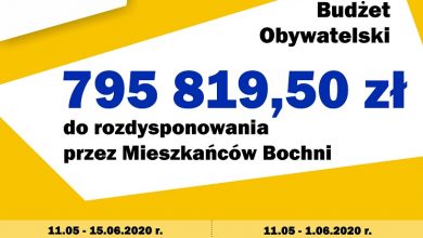 11 maja 2020 r. rusza nabór projektów osiedlowych w ramach Budżetu Obywatelskiego Bochni na 2021 r. W tej edycji BO do rozdysponowania będzie 795 819,50…