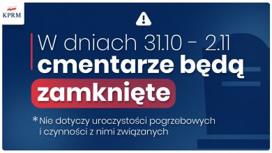 Cmentarze będą zamknięte 31 października, 1 listopada w Dzień Wszystkich Świętych oraz w Dzień Zaduszny 2 listopada – poinformował podczas…