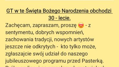 Grupa Teatralna GT gorąco zaprasza na Bożonarodzeniowy montaż słowno – muzyczny przed pasterką pt. „Dzieciąteczku razem zaśpiewajmy” 24.12.22 o godz.23.00…
