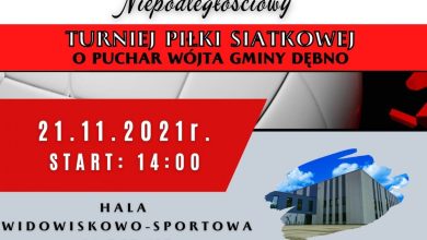 W niedzielę, 21 listopada 2021 r. o godz. 14:00 na Hali Widowiskowo-Sportowej w Dębnie odbędzie się Turniej Piłki Siatkowej pn.…