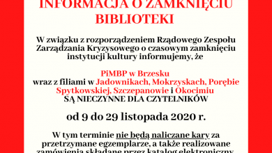 W związku z rozporządzeniem Rządowego Zespołu Zarzadzania Kryzysowego o czasowym zamknięciu instytucji kultury Powiatowa i Miejska Biblioteka Publiczna w Brzesku…