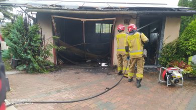 Pożar garażu w Łysej Górze / zdjęcia / 27 września 2024 r.