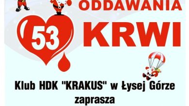 Klub HDK „Krakus” w Łysej Górze serdecznie zaprasza honorowych krwiodawców oraz wszystkie osoby chętne do udziału w Akcji Oddawania Krwi.…