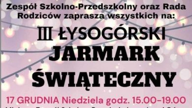 W najbliższą niedzielę tj. 17 grudnia o godzinie 15:00 w Zespole Szkolno-Przedszkolnym w Łysej Górze odbędzie się III Łysogórski Jarmark…