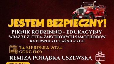 W sobotę, 24 sierpnia 2024 roku, przy Remizie w Porąbce Uszewskiej odbył się Piknik Rodzinno-Edukacyjny „Jestem Bezpieczny!”, połączony ze Zlotem…
