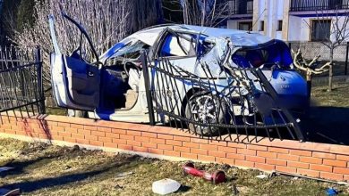 Jazda zakończona na ogrodzeniu prywatnej posesji