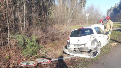 Szczepanów. Zdradliwa leśna droga – auto wypadło z jezdni