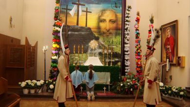Kosynierzy ze Strzelec Wielkich przy Grobie Chrystusa. Wielkanocna tradycja z Gminy Szczurowa / zdjęcia