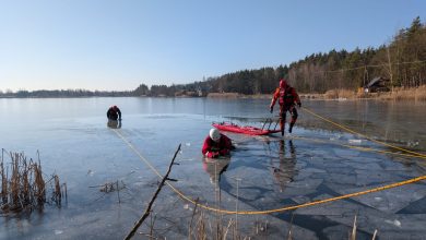 Wierzchosławice. Ćwiczenia z zakresu ratownictwa na zbiornikach wodnych w okresie zimowym