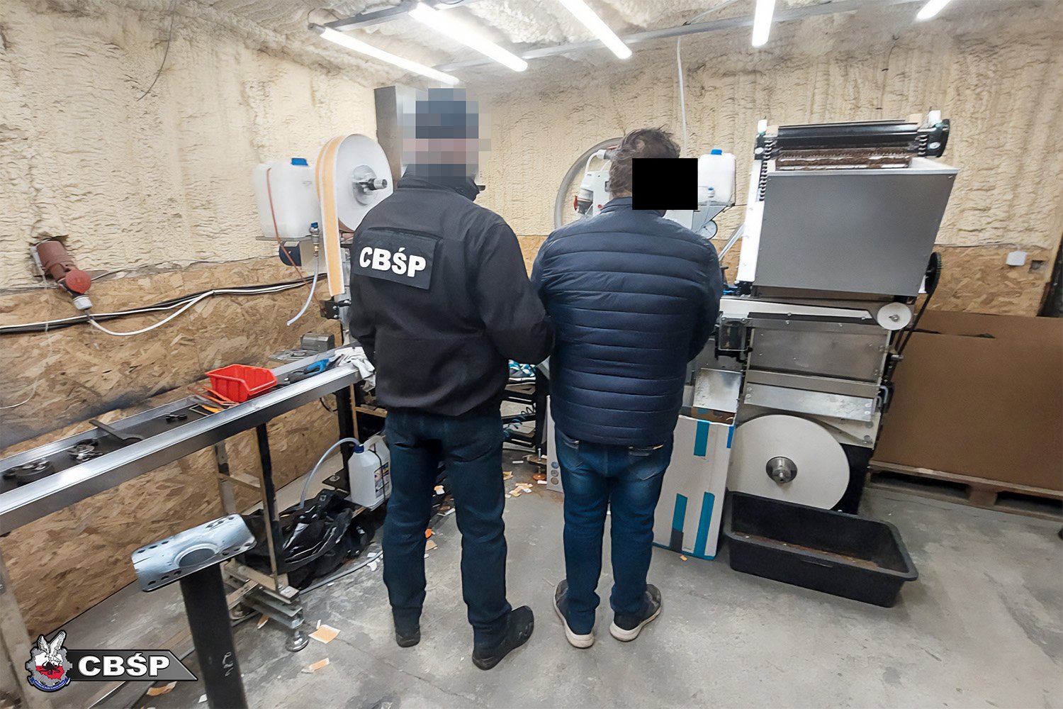 Na miejscu funkcjonariusze odkryli w pełni wyposażoną halę produkcyjną, w której znajdowała się profesjonalna linia technologiczna do produkcji wyrobów tytoniowych. W toku przeszukania posesji zabezpieczono nie tylko maszyny i komponenty służące do produkcji papierosów, ale również około 380 kilogramów tytoniu bez wymaganych polskich znaków akcyzy. Dodatkowo śledczy przejęli gotówkę w różnych walutach, której łączna wartość po przeliczeniu na złotówki przekroczyła kwotę 300 tysięcy złotych.
