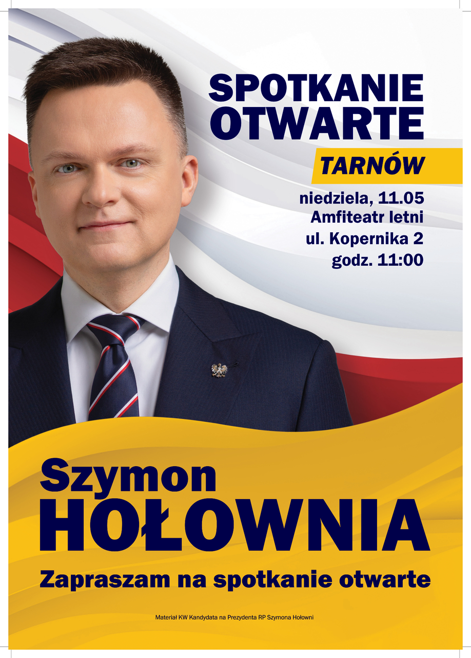 W niedzielę 11 maja 2025 r. Szymon Hołownia kandydat na prezydenta RP spotka się z wyborcami w tarnowskim Amfiteatrze Letnim. Spotkanie odbędzie się o godz. 11.00.