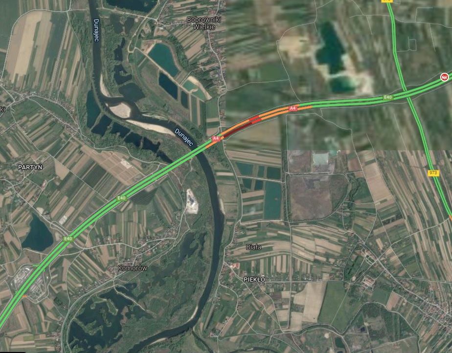 Mapa natężenia ruchu / autostrada A4 godz. 20.00 / 7 wrzesnia 2021 r.