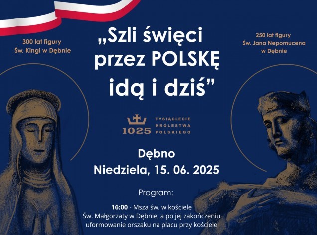 Inscenizacja koronacji Bolesława Chrobrego, barwny pochód świętych, rycerskie chorągwie i dźwięki bębnów – już w najbliższą niedzielę, 15 czerwca Muzeum Zamek w Dębnie i zamkowy park zamienią się w żywą scenę historii i tradycji. Tego dnia odbędzie się wyjątkowe plenerowe świętowanie trzech rocznic: Tysiąclecia Królestwa Polskiego, 300-lecia figury św. Kingi oraz 250-lecia figury św. Jana Nepomucena znajdujących się w Dębnie w pobliżu zamku.