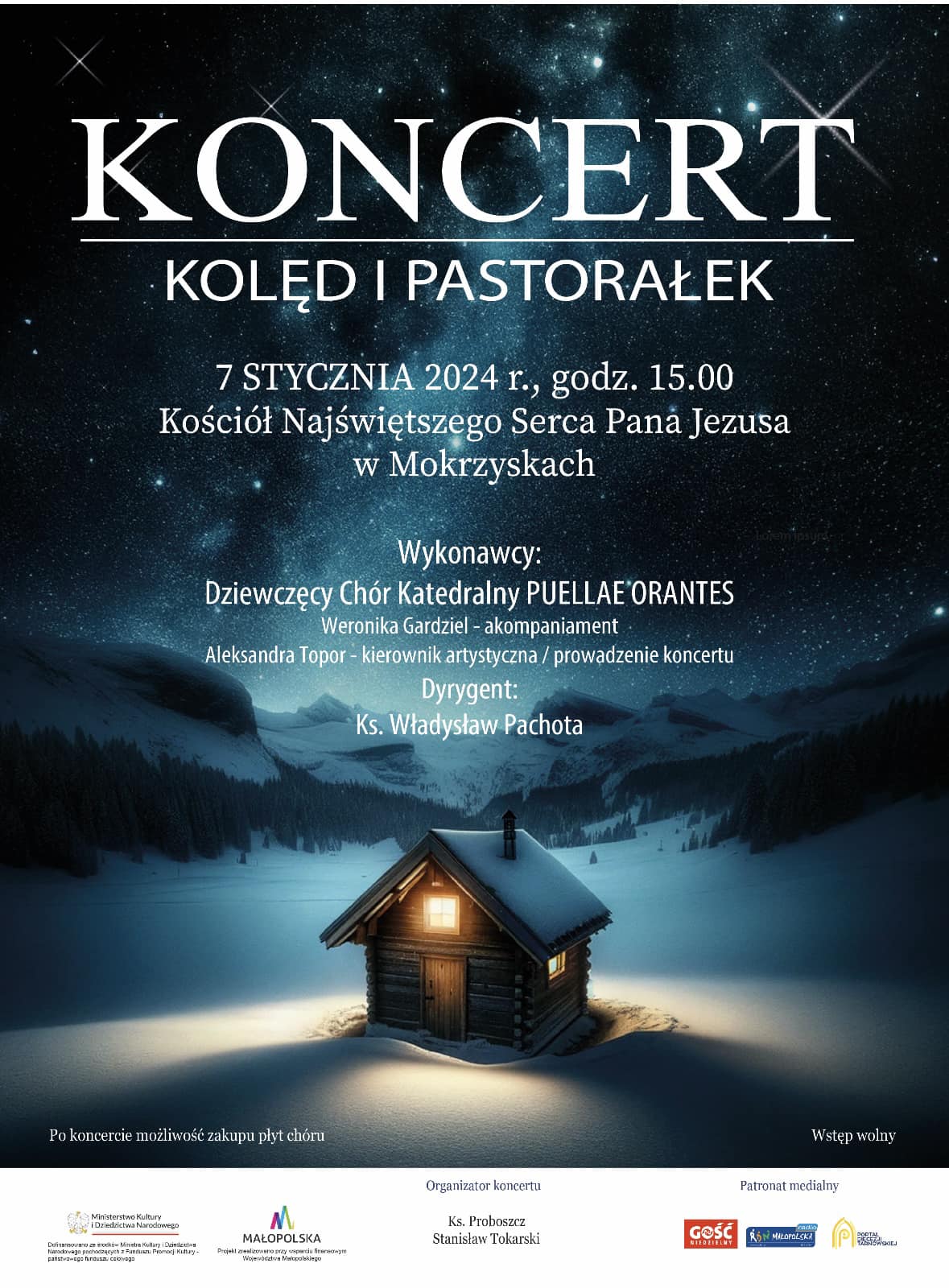 W najbliższą niedzielę 7 stycznia 2024 roku w kościele parafialnym w Mokrzyskach zabrzmią kolędy i pastorałki w wykonaniu światowej sławy Dziewczęcego Chóru Katedralnego „Puellae Orantes” z Tarnowa.