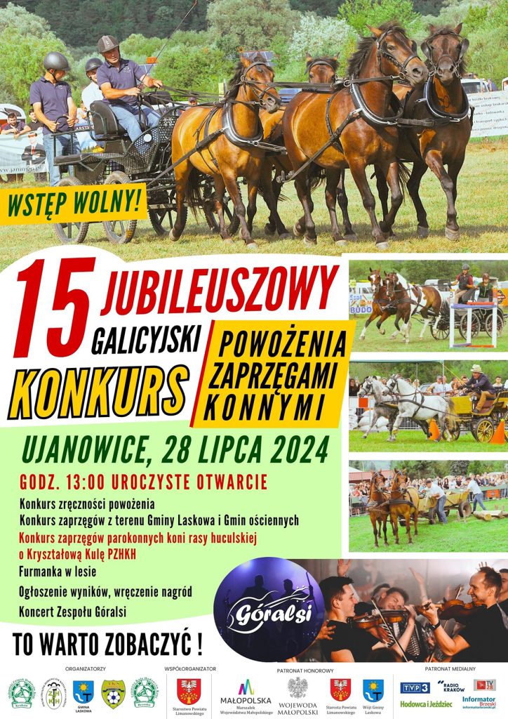Już w najbliższą niedzielę – 28 lipca, od godz. 13:00, na placu targowym koło boiska sportowego – „AKS Ujanowice” odbędzie się XIII Galicyjski Konkurs Powożenia Zaprzęgami Konnymi w Ujanowicach (Gmina Laskowa). Oprócz konkurencji związanych z powożeniem przygotowano mnóstwo atrakcji. Wieczorem odbędzie się plenerowa impreza taneczna. Na scenie wystąpi zespół Góralsi.