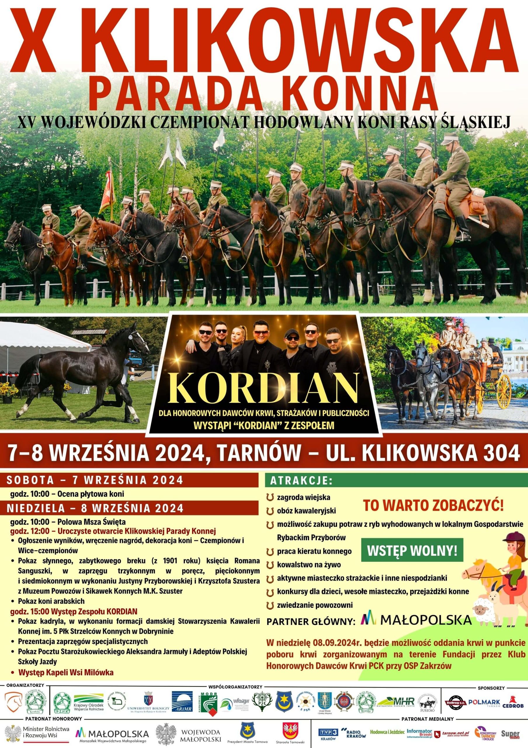 Już w najbliższy weekend odbędzie się jubileuszowa X Klikowska Parada Konna. Odbędzie się ona w Stadninie Koni w Klikowej (ul. Klikowska 304) w dniach 7-8 września 2024 r., a towarzyszyć będzie jej XV Wojewódzki Czempionat Hodowlany Koni Rasy Śląskiej. WSTĘP WOLNY!
