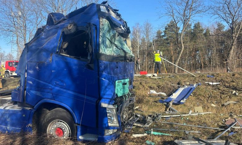 Do pierwszego wypadku doszło na DK94 w miejscowości Ładna. Jak wynika ze wstępnych ustaleń, kierujący ciągnikiem siodłowym marki Volvo, z nieustalonych na tę chwilę przyczyn, na suchej i dobrej nawierzchni zjechał na przeciwległy pas ruchu, doprowadzając do czołowego zderzenia z samochodem dostawczym marki Iveco.