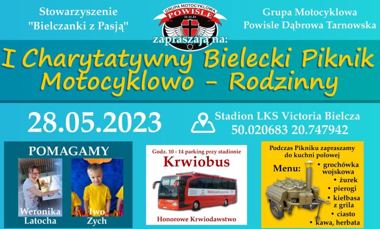 O godzinie 10.30 na stadionie LKS Viktoria Bielcza rozpoczął się I Charytatywny Bielecki Piknik Motocyklowo-Rodzinny. Na wydarzenie zapraszają Stowarzyszenie „Bielczanki z Pasją” oraz Grupa Motocyklowa Powiśle Dąbrowa Tarnowska. Organizatorzy przygotowali szereg ciekawych atrakcji dla całych rodzin.
