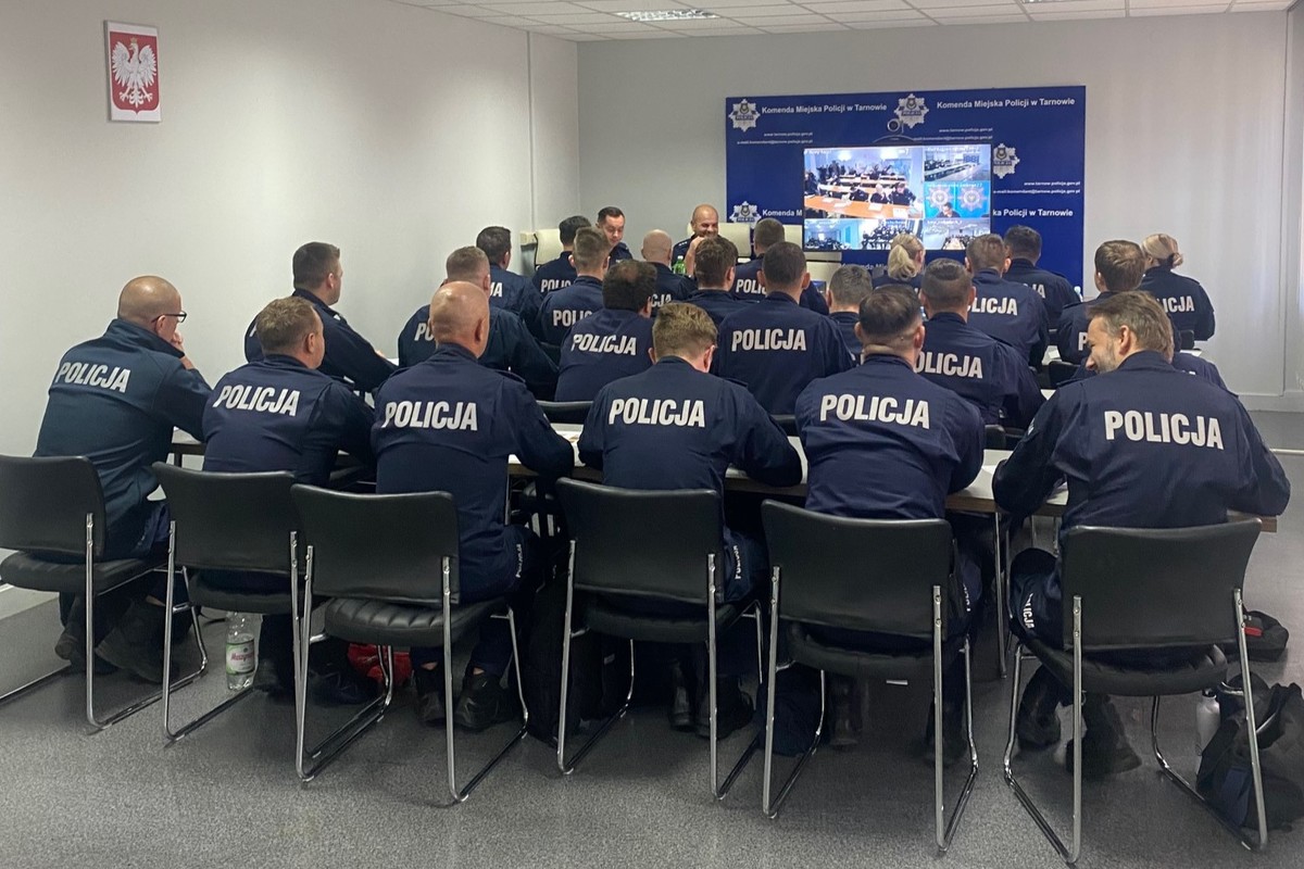 Szkolenie ma charakter hybrydowy, a stacjonarne zajęcia dla funkcjonariuszy z tarnowskiej jednostki odbywają się po raz pierwszy w siedzibie Komendy Miejskiej Policji w Tarnowie.