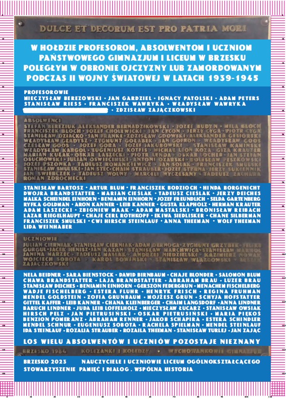 – Gdyby ktoś z Państwa mógł wesprzeć ten projekt upamiętniający z imienia i nazwiska wszystkich poległych w latach wojny uczniów i nauczycieli brzeskiego gimnazjum, bylibyśmy bardzo wdzięczni.