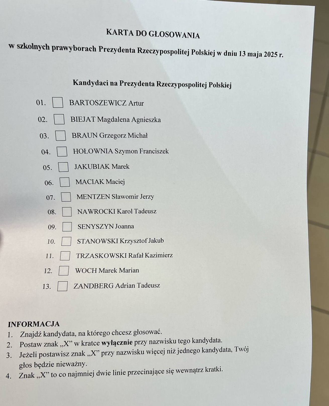 O godzinie 8:30 w Zespole Szkół Technicznych i Branżowych im. Bohaterów Westerplatte w Brzesku rozpoczęły szkolne prawybory prezydenckie. Wydarzenie potrwa do godz. 13.00. To inicjatywa Samorządu Uczniowskiego.