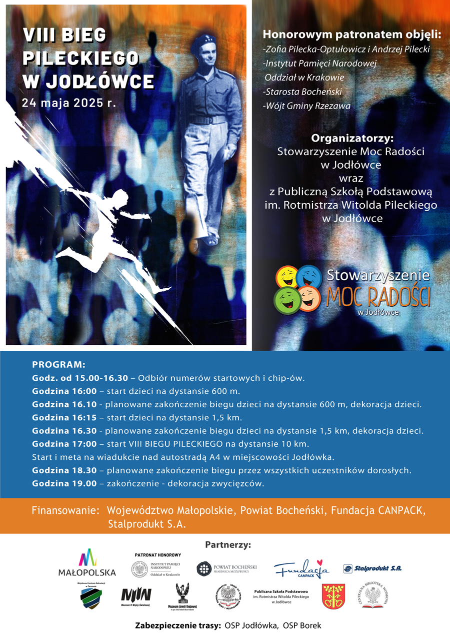 Trwają zapisy na VIII Bieg Pileckiego w Jodłówce, który odbędzie się 24 maja 2025 r. Tradycyjnie już patronat nad biegiem objął starosta bocheński Adam Korta.