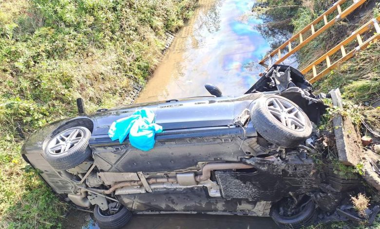 Tworkowa. Samochód osobowy wpadł do potoku / 18 września 2024 r.