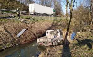 Tworkowa / Samochód wpadł do rzeki – zdjęcia / 2 marca 2020 r.