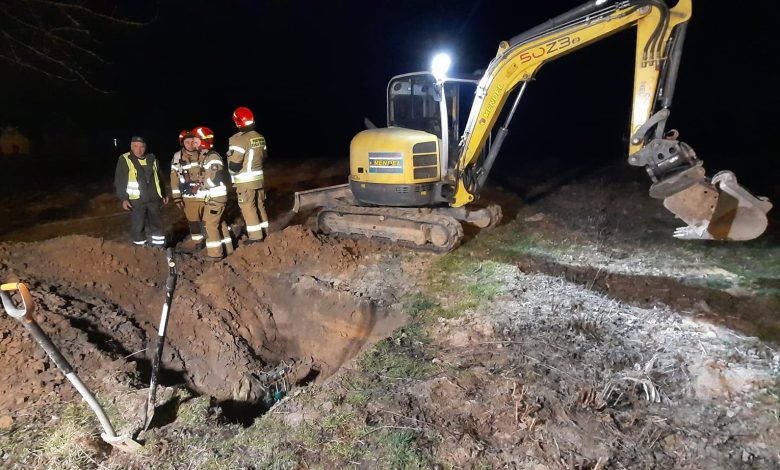 Do zdarzenia doszło około godziny 18. W pierwszej fazie akcji strażacy zabezpieczyli dostęp do uszkodzonego gazociągu. Przyczyną uszkodzenia gazociągu były prace ziemne prowadzone w pobliżu z wykorzystaniem mikrokoparki.