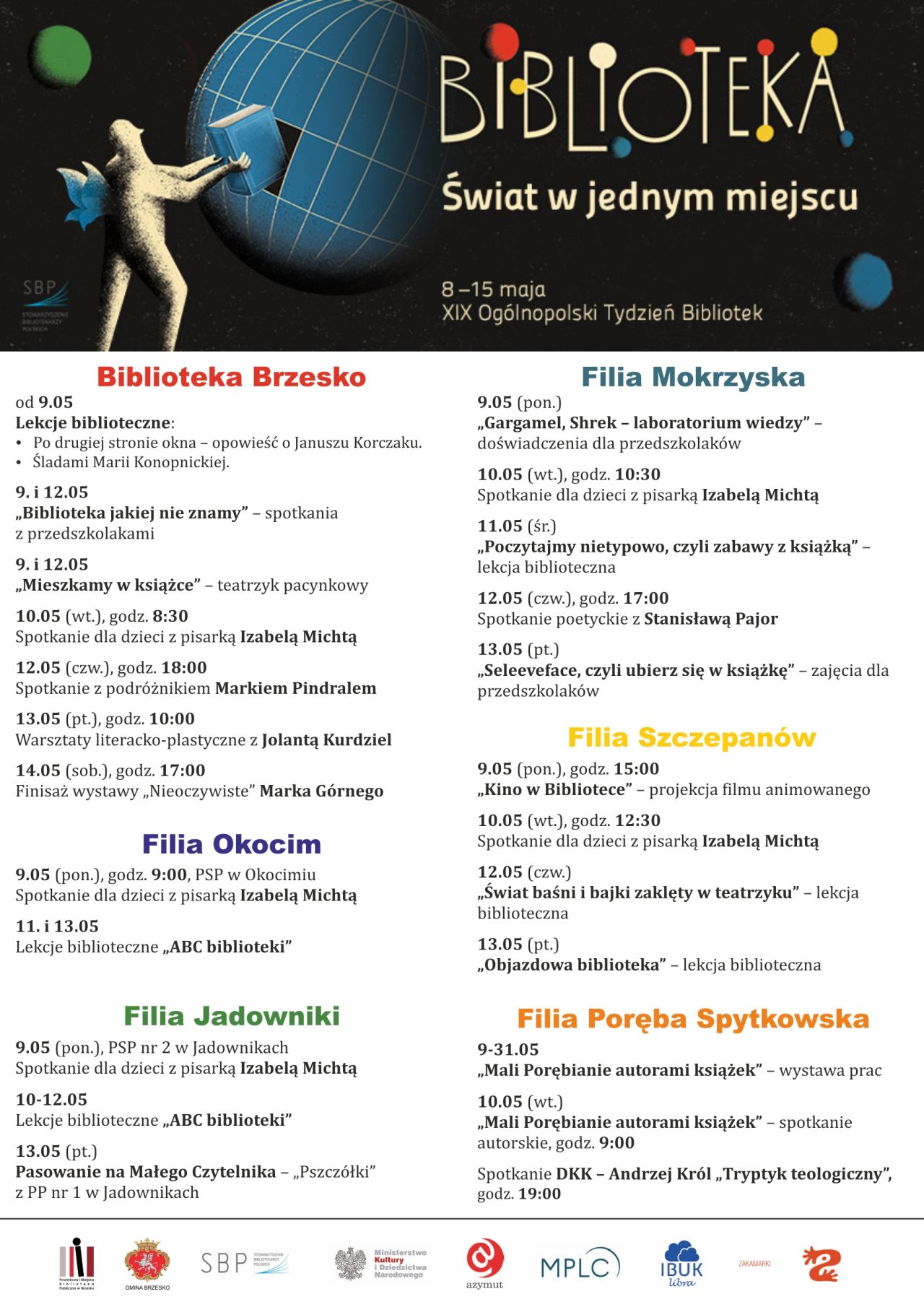 11.05 (śr.) „Poczytajmy nietypowo, czyli zabawy z książką” -lekcja biblioteczna 12.05 (czw.), godz. 17:00 Spotkanie poetyckie z Stanisławą Pajor