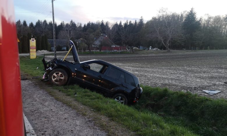 Z nieustalonych jeszcze przyczyny kierujący samochodem osobowym zjechał z drogi i uderzył w znak (ograniczenia prędkości do 70 km/h oraz znak ostrzegawczy niebezpieczny zakręt w lewo). Kierujący pojazdem następnie oddalił się z miejsca zdarzenia.