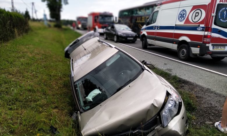 Tymowa. Samochód osobowy uderzył w przydrożny przepust. 2 osoby ranne / 25 czerwca 2023 r.