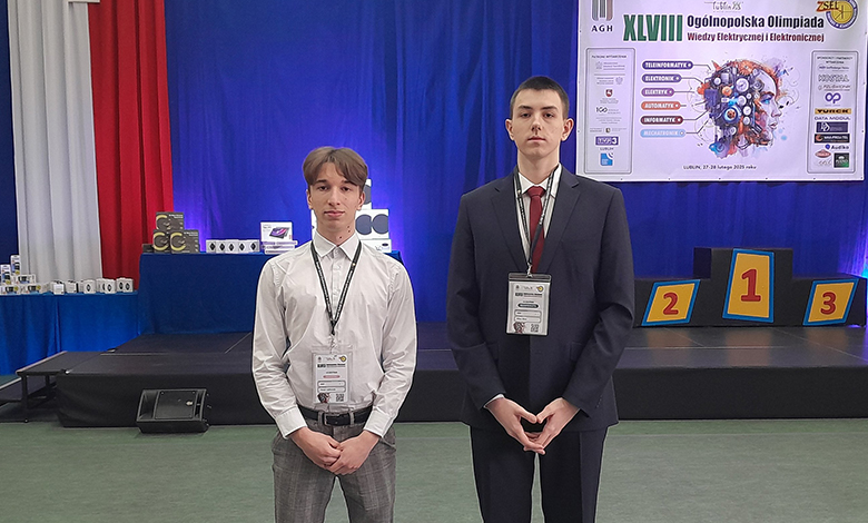 W kategorii Teleinformatyka Miłosz Klasa z klasy 5TP zdobył prestiżowy tytuł Laureata, natomiast w kategorii Elektryka Patryk Ząbkowski z klasy 4TMe uzyskał zaszczytny tytuł Finalisty.