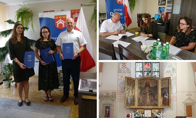 W poniedziałek 29 lipca w Urzędzie Gminy Dębno odbyło się podpisanie umowy dotyczącej realizacji zadania p.n. „Prace konserwatorskie przy tryptyku z przedstawieniem Trójcy Świętej i aniołów”. Wykonawstwo zadania zostało powierzone firmie Iwona Martynowicz. Konserwacja zabytków.