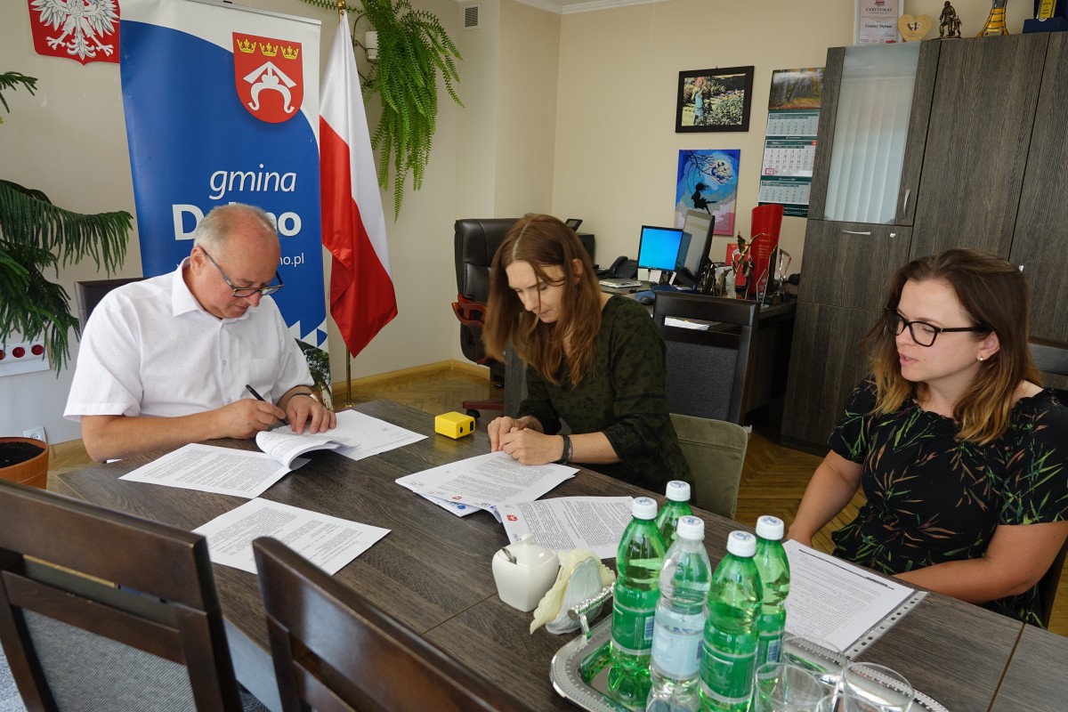 W poniedziałek 29 lipca w Urzędzie Gminy Dębno odbyło się podpisanie umowy dotyczącej realizacji zadania p.n. „Prace konserwatorskie przy tryptyku z przedstawieniem Trójcy Świętej i aniołów”. Wykonawstwo zadania zostało powierzone firmie Iwona Martynowicz. Konserwacja zabytków.