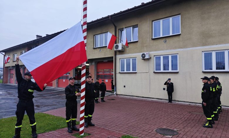 Z okazji Narodowego Święta Niepodległości w jednostkach Państwowej Straży Pożarnej w Małopolsce odbyła się uroczysta zmiana służby, podczas której podniesiono flagę państwową.