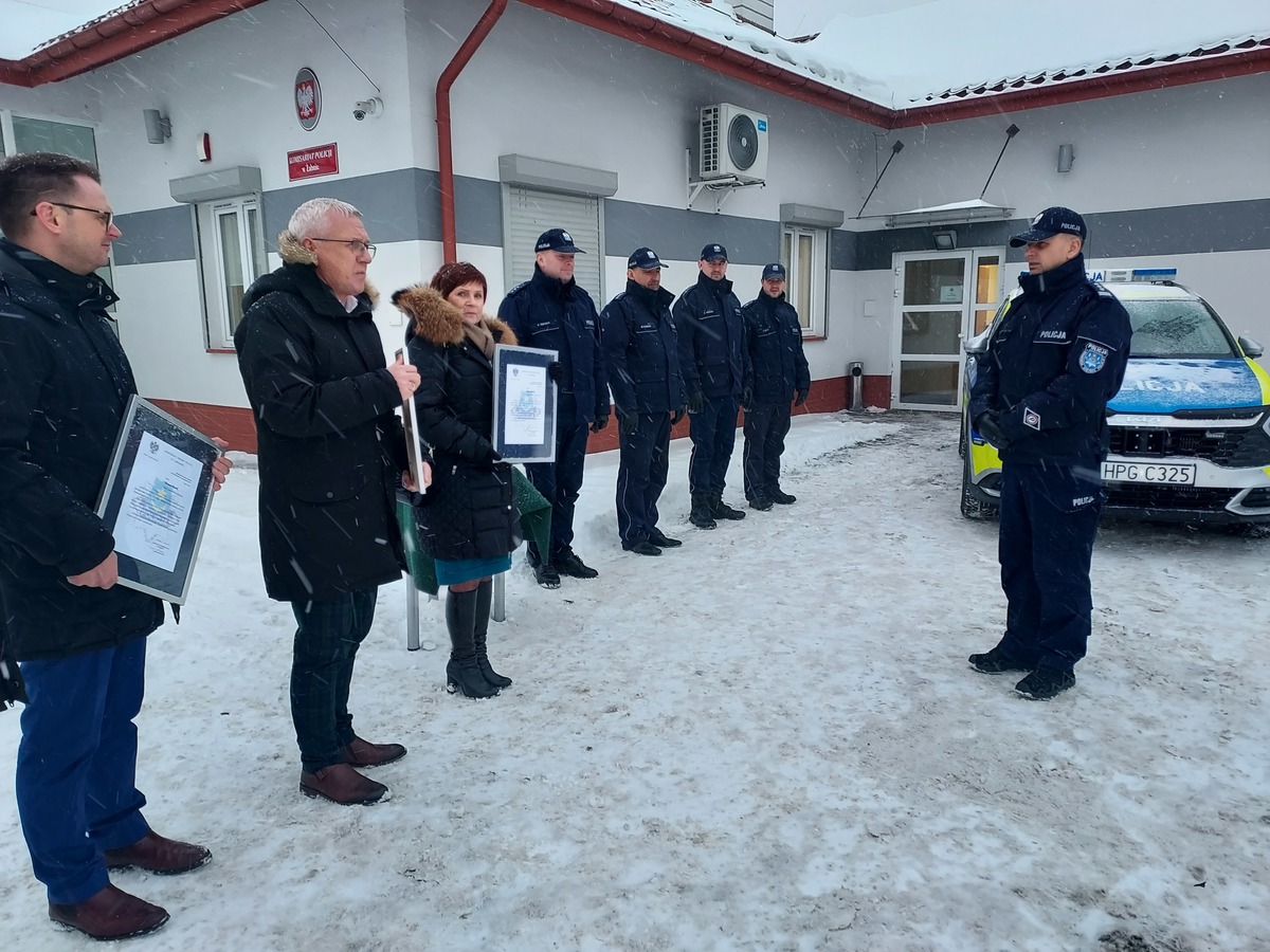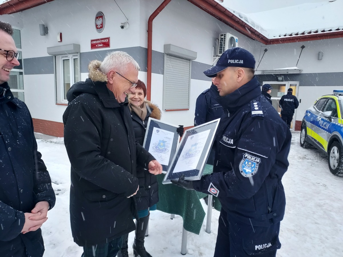 Na uroczystości obecni był Komendant Miejski Policji w Tarnowie insp. Mariusz Dymura, Komendant Komisariatu Policji w Żabnie kom. Dominik Rzepecki, Burmistrz Żabna Pani Marta Herduś, Burmistrz Radłowa Pan Zbigniew Mączka oraz  Wójt Wietrzychowic Pan Tomasz Banek.