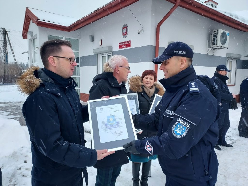 Na uroczystości obecni był Komendant Miejski Policji w Tarnowie insp. Mariusz Dymura, Komendant Komisariatu Policji w Żabnie kom. Dominik Rzepecki, Burmistrz Żabna Pani Marta Herduś, Burmistrz Radłowa Pan Zbigniew Mączka oraz Wójt Wietrzychowic Pan Tomasz Banek.